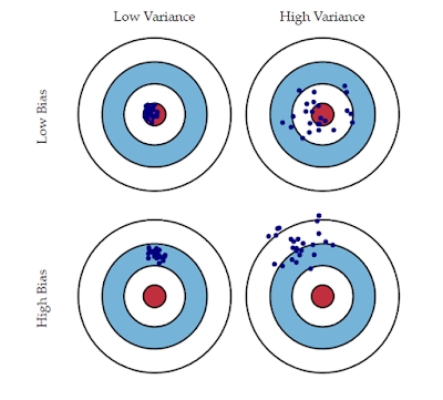 ๋ชจ๋ธ์ ์์ธก๊ฒฐ๊ณผ์์ ์์ธก๊ฐ๊ณผ ์ค์ ๊ฐ์ด ๋ฉ๋ฆฌ ๋จ์ด์ ธ ์์ผ๋ฉด ๊ฒฐ๊ณผ์ ํธํฅ(bias)์ด ๋๊ณ , ์์ธก๊ฐ๋ค ๋ผ๋ฆฌ ๋ฉ๋ฆฌ ํฉ์ด์ ธ ์์ผ๋ฉด ๋ถ์ฐ(variance)์ด ๋๋ค๊ณ ํ๋ค. ์ด๋ ๋ฏ, ํ์ต ์ค๋ฅ์ ์ฃผ์ ์์ธ์ด ํธํฅ, ๋ถ์ฐ ๋๋ฌธ์ธ๋ฐ ์์๋ธ์ ์ด๋ฌํ ์์๋ฅผ ์ต์ํํ ์ ์๋ค.