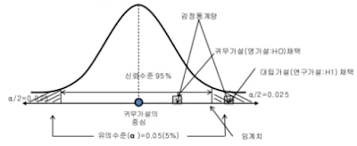 귀무가설, 유의수준, 검정통계량, 기각/채택